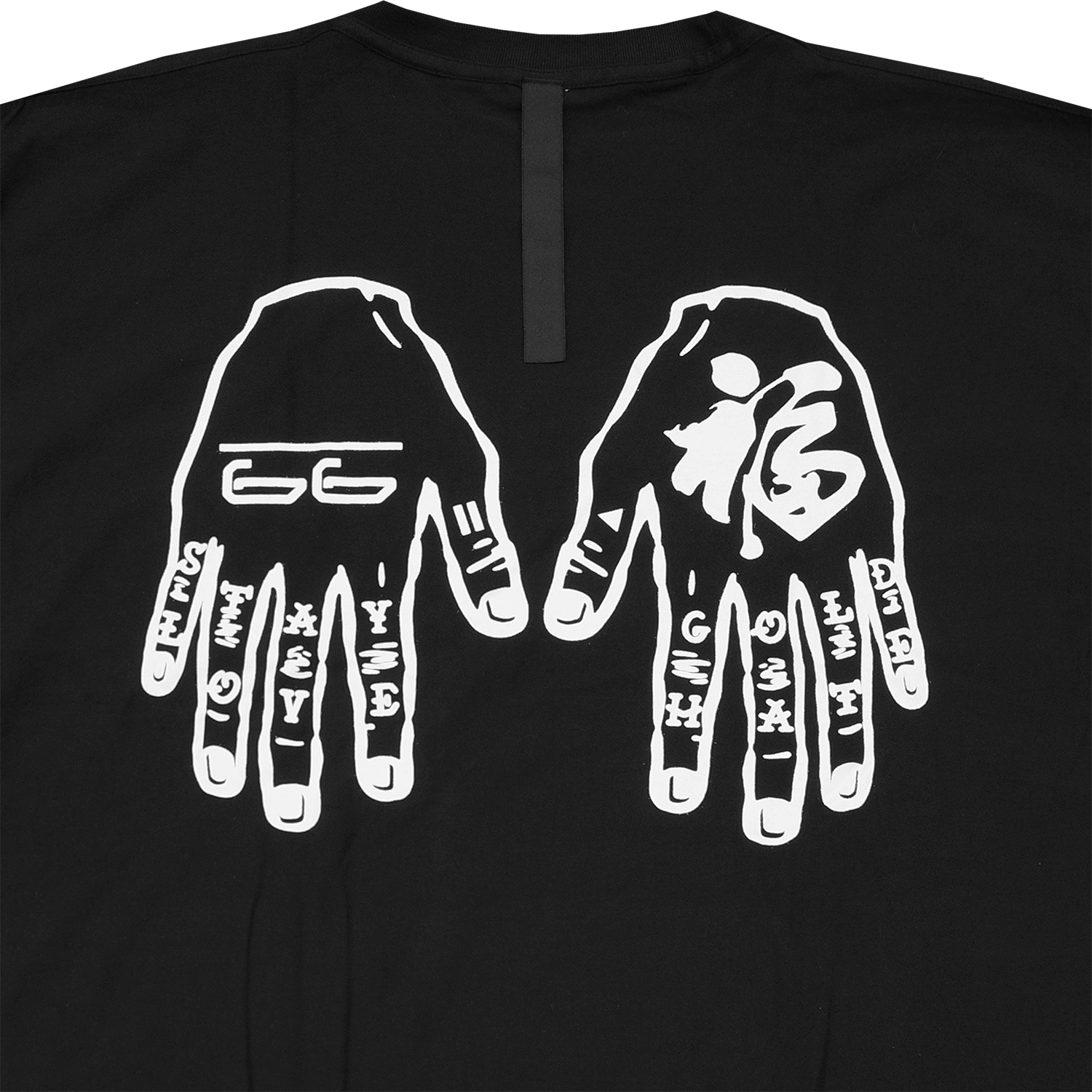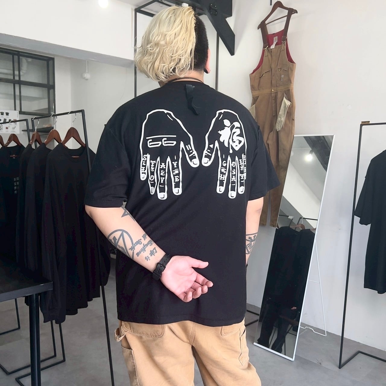 ハンドデザインをプリントしたTシャツ。