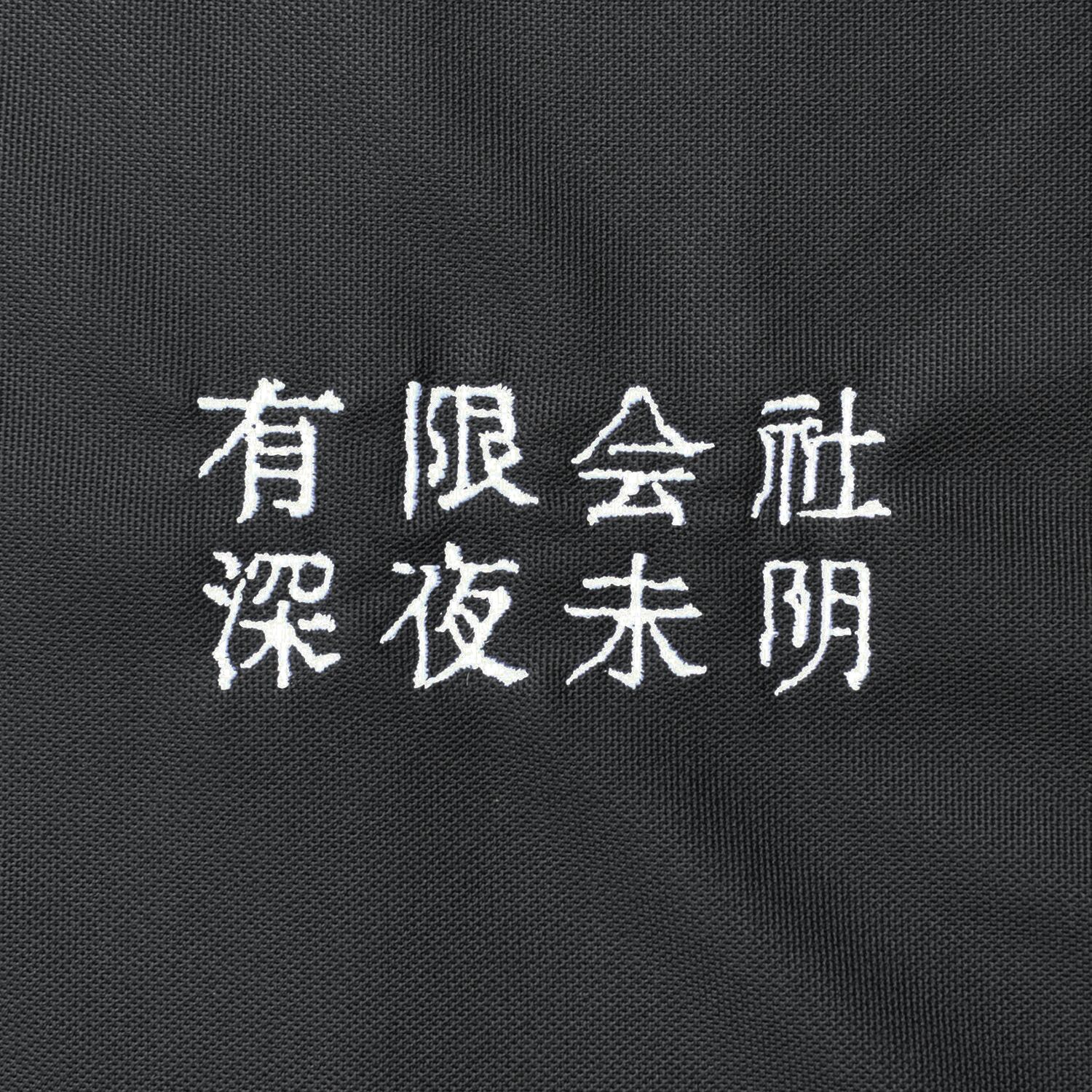 フロント左胸「有限会社深夜未明」刺繍入り。